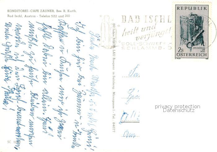 13188364 alte Postkarte Bad Ischl Salzkammergut Konditorei-Cafe Zauner postalisch gelaufen Erhaltung siehe scans [PaolaD17] KatCode: 11390315040703