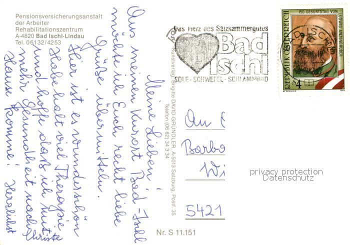 73046351 alte Postkarte Bad Ischl Salzkammergut Lindau Pensionsversicherungsanstalt REHA postalisch gelaufen Erhaltung siehe scans [KathaD81] KatCode: 11390315040703