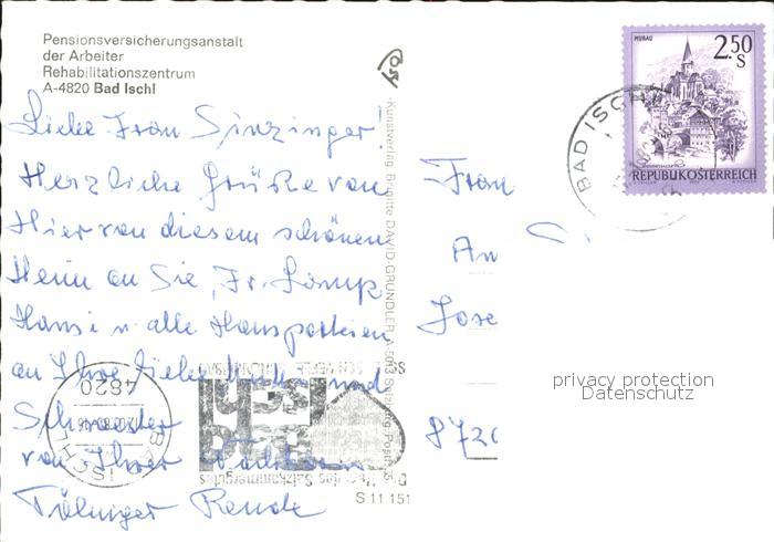72034804 alte Postkarte Bad Ischl Salzkammergut Rehabilitationszentrum Pensionsversicherungsanstalt postalisch gelaufen Erhaltung siehe scans KatCode: 11390315040703