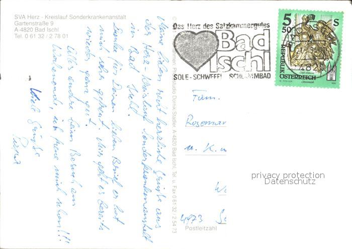 72279544 alte Postkarte Bad Ischl Salzkammergut SVA Herz- Kreislauf Sonderanstalten postalisch gelaufen Erhaltung siehe scans KatCode: 11390315040703