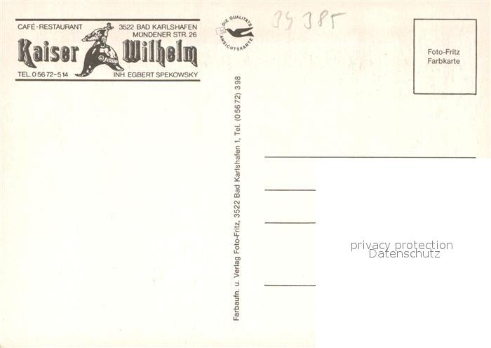 73568888 Bad Karlshafen Cafe-Restaurant Kaiser Wilhelm postalisch nicht gelaufen Erhaltung siehe scans [PaolaD17] KatCode: 11110006633002