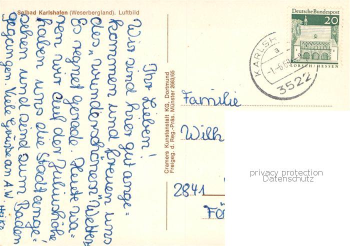 73764348 alte Postkarte Bad Karlshafen Fliegeraufnahme postalisch gelaufen Erhaltung siehe scans [FriedD77] KatCode: 11110006633002