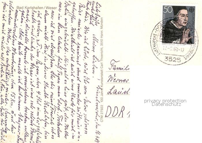 73170573 alte Postkarte Bad Karlshafen Fliegeraufnahme postalisch gelaufen Erhaltung siehe scans [FriedD77] KatCode: 11110006633002