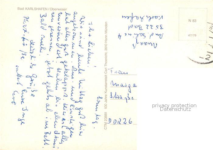 73168542 alte Postkarte Bad Karlshafen Fliegeraufnahme postalisch gelaufen Erhaltung siehe scans [WerneD78] KatCode: 11110006633002