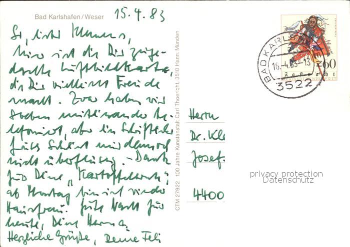 72421271 alte Postkarte Bad Karlshafen Fliegeraufnahme postalisch gelaufen Erhaltung siehe scans KatCode: 11110006633002