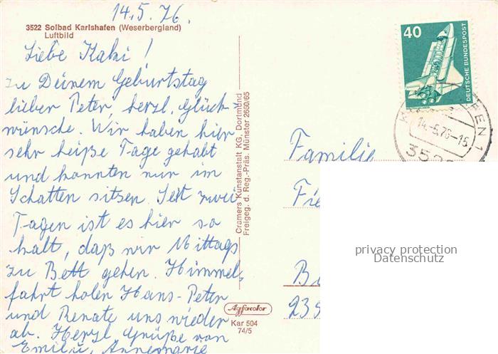 74096004 alte Postkarte Bad Karlshafen Fliegeraufnahme postalisch gelaufen Erhaltung siehe scans [WerneD78] KatCode: 11110006633002