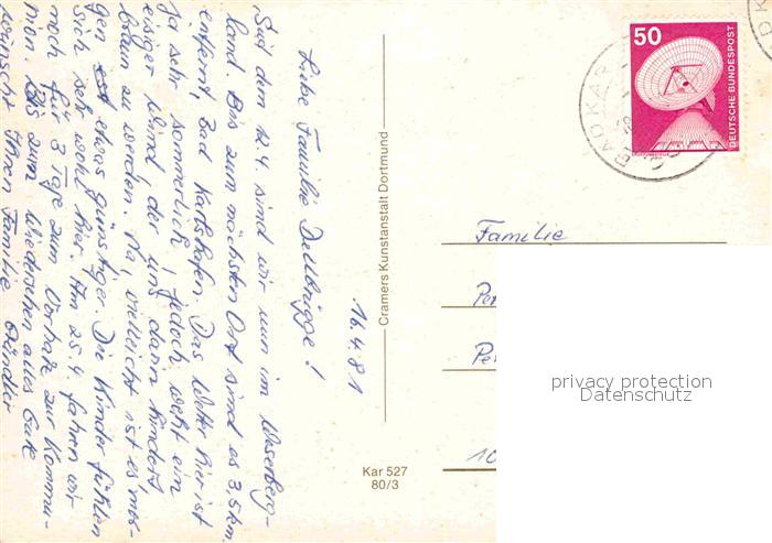 72739725 alte Postkarte Bad Karlshafen Fliegeraufnahme Weser Invalidenhaus Carlstrasse Kurzentrum postalisch gelaufen Erhaltung siehe scans [LiesaD40] KatCode: 11110006633002