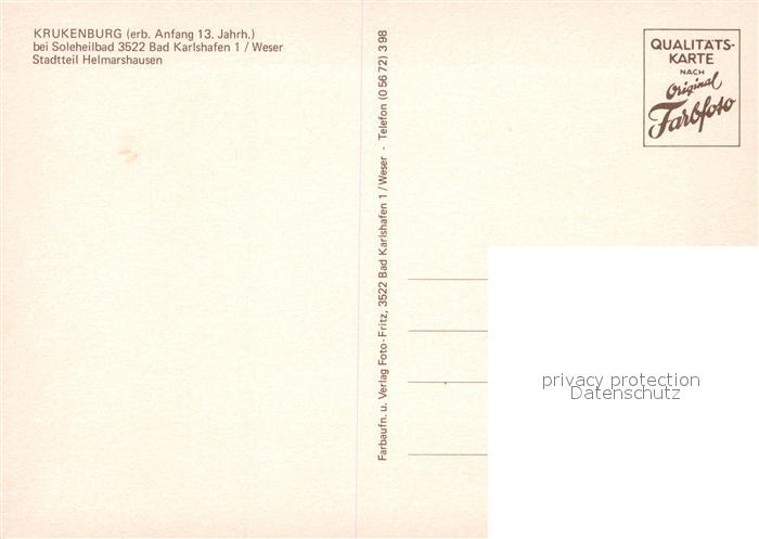 73270849 Bad Karlshafen Krukenburg Helmarshausen postalisch nicht gelaufen Erhaltung siehe scans [KathaD81] KatCode: 11110006633002