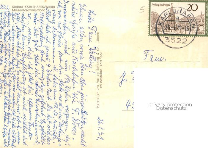 73125200 alte Postkarte Bad Karlshafen Mineral-Schwimmbad postalisch gelaufen Erhaltung siehe scans [NatalD47] KatCode: 11110006633002