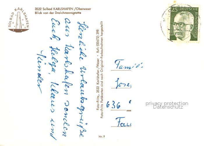73225524 alte Postkarte Bad Karlshafen Panorama Blick von der Deichmannsgrotte postalisch gelaufen Erhaltung siehe scans [FriedD77] KatCode: 11110006633002