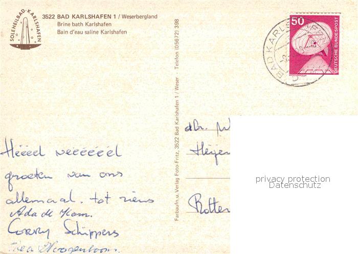 72840713 alte Postkarte Bad Karlshafen Panorama Weserbergland Campingplatz an der Weser postalisch gelaufen Erhaltung siehe scans [FriedD77] KatCode: 11110006633002