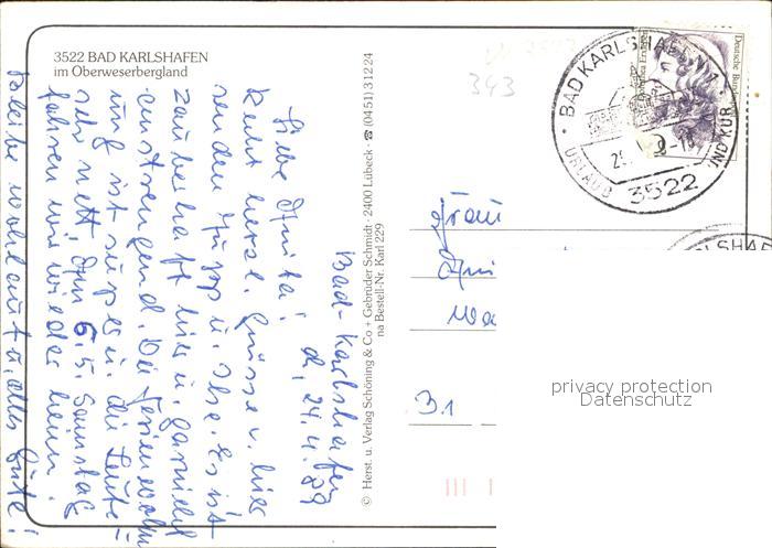 72603775 alte Postkarte Bad Karlshafen Partien an der Weser Saline Springbrunnen postalisch gelaufen Erhaltung siehe scans [FriedD77] KatCode: 11110006633002