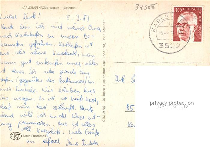 72959845 alte Postkarte Bad Karlshafen Rathaus postalisch gelaufen Erhaltung siehe scans [WerneD78] KatCode: 11110006633002
