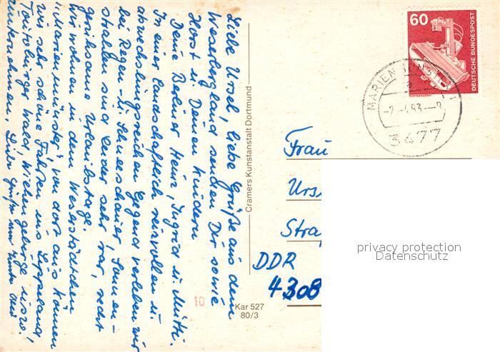 73295056 alte Postkarte Bad Karlshafen Teilansicht Rathaus Invalidenhaus Carlstr Weserpartie Kurzentrum postalisch gelaufen Erhaltung siehe scans [WerneD78] KatCode: 11110006633002
