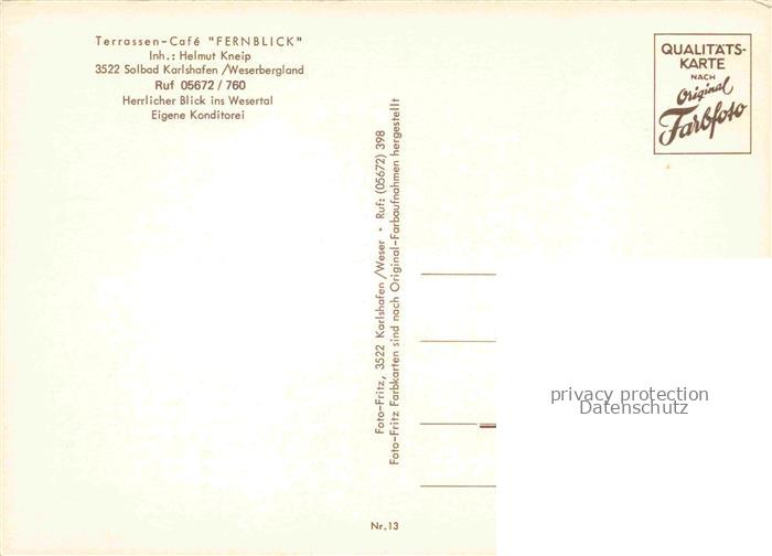 74043538 Bad Karlshafen Terrassen-Café Fernblick Panorama Weserbergland postalisch nicht gelaufen Erhaltung siehe scans [FriedD77] KatCode: 11110006633002