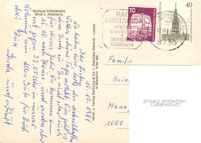73598825 alte Postkarte Bad Kissingen postalisch gelaufen Erhaltung siehe scans [PaolaD17] KatCode: 11110009672114
