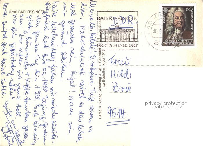 alte Postkarte Bad Kissingen Arkaden Kurpark Postkutsche Schmuckhof Rosengarten postalisch gelaufen Erhaltung siehe scans