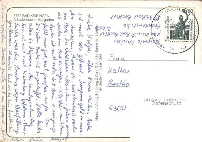 72394746 alte Postkarte Bad Kissingen Arkadenbau im Kurgarten postalisch gelaufen Erhaltung siehe scans KatCode: 11110009672114