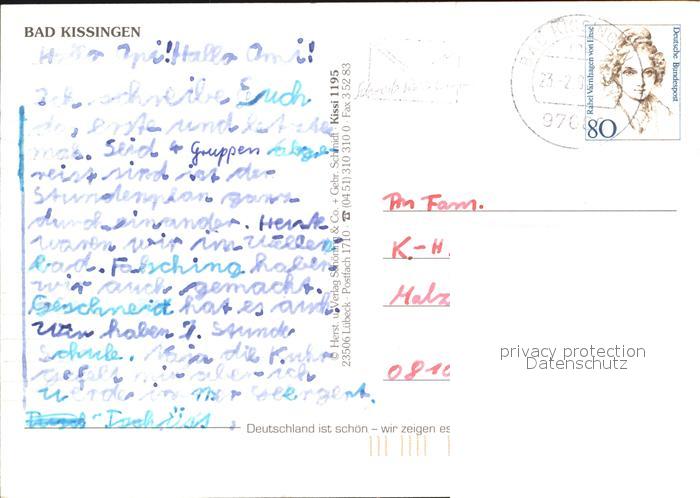 72580896 alte Postkarte Bad Kissingen Arkadenbau Kurbaehnle Wildpark-Klaushof Missesaenger-Brunnen postalisch gelaufen Erhaltung siehe scans [LiesaD40] KatCode: 11110009672114