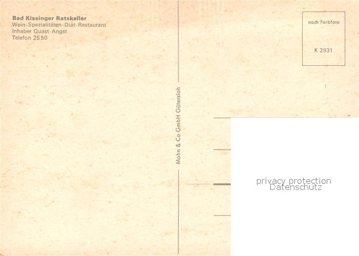 73211747 Bad Kissingen Bad Kissinger Ratskeller Gaststube postalisch nicht gelaufen Erhaltung siehe scans [WerneD78] KatCode: 11110009672114