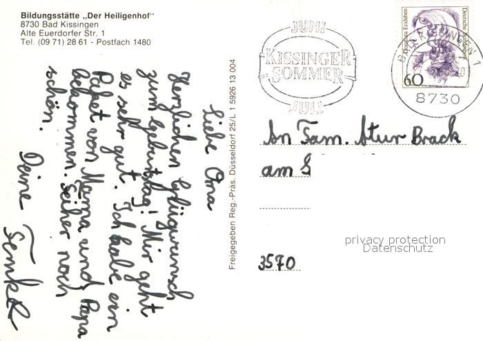 72959752 alte Postkarte Bad Kissingen Bildungsstaette Der Heiligenhof postalisch gelaufen Erhaltung siehe scans [NatalD47] KatCode: 11110009672114
