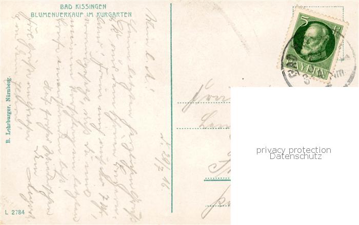 73808404 alte Postkarte Bad Kissingen Blumenverkauf im Kurgarten postalisch gelaufen Erhaltung siehe scans [WerneD78] KatCode: 11110009672114