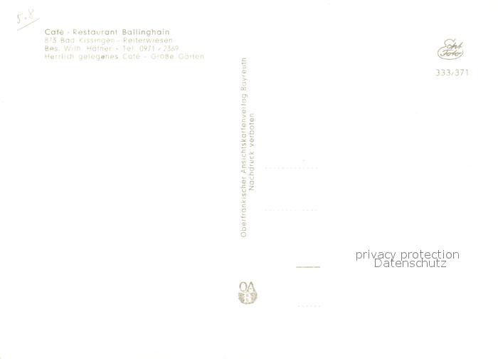 73090316 Bad Kissingen Cafe Ballinghain postalisch nicht gelaufen Erhaltung siehe scans [NatalD47] KatCode: 11110009672114
