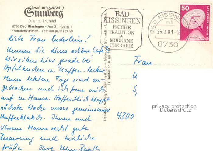 73333488 alte Postkarte Bad Kissingen Cafe Restaurant Sinnberg postalisch gelaufen Erhaltung siehe scans [LiesaD40] KatCode: 11110009672114