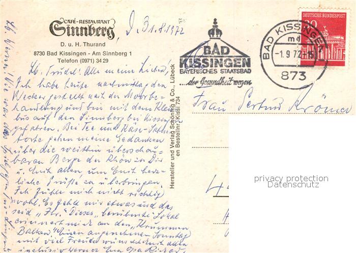 72959796 alte Postkarte Bad Kissingen Cafe Restaurant Sinnberg Gastraeume postalisch gelaufen Erhaltung siehe scans [WerneD78] KatCode: 11110009672114