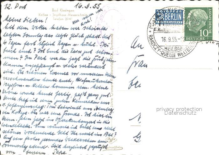 72478078 alte Postkarte Bad Kissingen Cafe und Jagdhaus Messerschmitt postalisch gelaufen Erhaltung siehe scans KatCode: 11110009672114