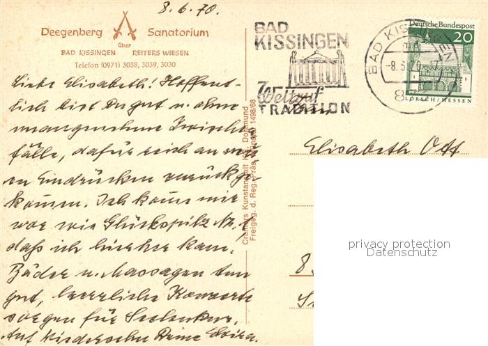 73257371 alte Postkarte Bad Kissingen Deegenberg Sanatorium Fliegeraufnahme postalisch gelaufen Erhaltung siehe scans [FriedD77] KatCode: 11110009672114