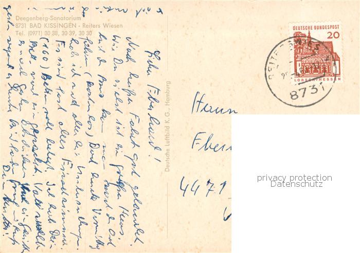 73766072 alte Postkarte Bad Kissingen Deegenberg Sanatorium postalisch gelaufen Fliegeraufnahme Erhaltung siehe scans [FriedD77] KatCode: 11110009672114