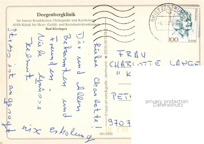 73655278 alte Postkarte Bad Kissingen Deegenbergklinik Fliegeraufnahme postalisch gelaufen Erhaltung siehe scans [FriedD77] KatCode: 11110009672114