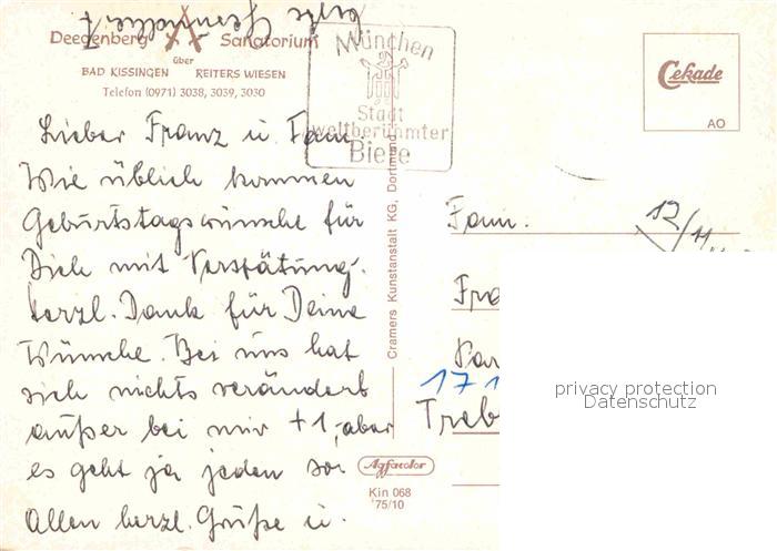 72839825 alte Postkarte Bad Kissingen Degenberg Sanatorium postalisch gelaufen Erhaltung siehe scans [LiesaD40] KatCode: 11110009672114