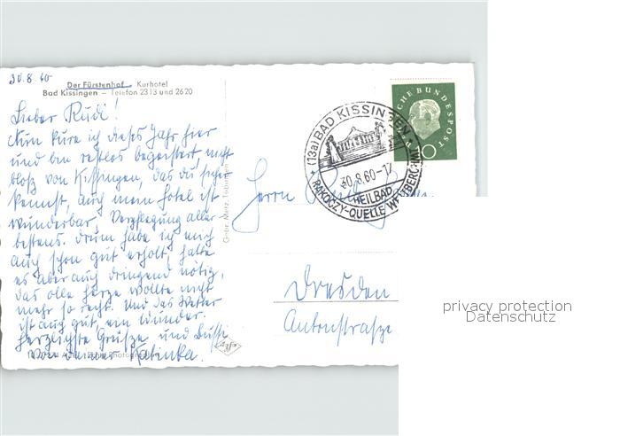 72431130 alte Postkarte Bad Kissingen Der Fuerstenhof Kurhotel postalisch gelaufen Erhaltung siehe scans KatCode: 11110009672114