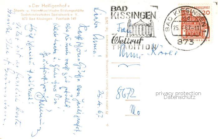 73809824 alte Postkarte Bad Kissingen Der Heiligenhof Bildungsstaette postalisch gelaufen Erhaltung siehe scans [FriedD77] KatCode: 11110009672114