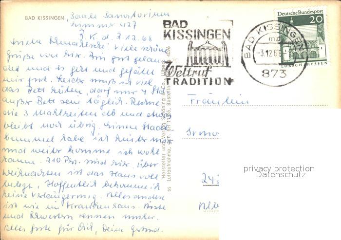 72464413 alte Postkarte Bad Kissingen Fliegeraufnahme postalisch gelaufen Erhaltung siehe scans KatCode: 11110009672114