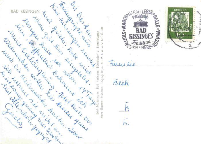 73975748 alte Postkarte BAD KIssINGEN Fliegeraufnahme postalisch gelaufen Erhaltung siehe scans [FriedD77] KatCode: 11110009672114