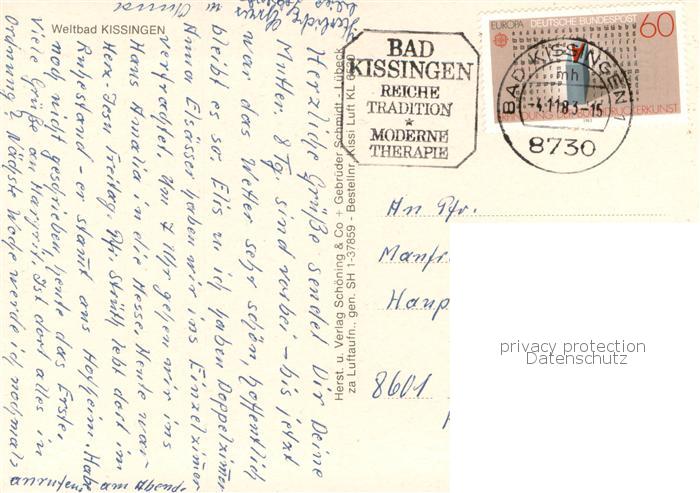 73779348 alte Postkarte Bad Kissingen Fliegeraufnahme postalisch gelaufen Erhaltung siehe scans [WerneD78] KatCode: 11110009672114
