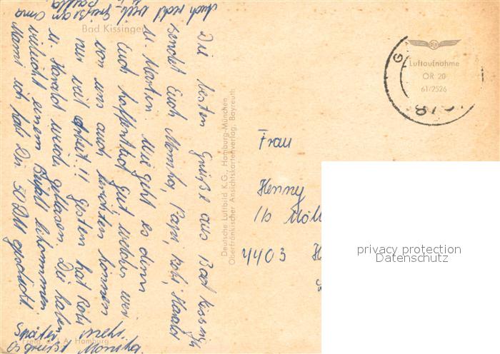 73747614 alte Postkarte Bad Kissingen Fliegeraufnahme postalisch gelaufen Erhaltung siehe scans [WerneD78] KatCode: 11110009672114