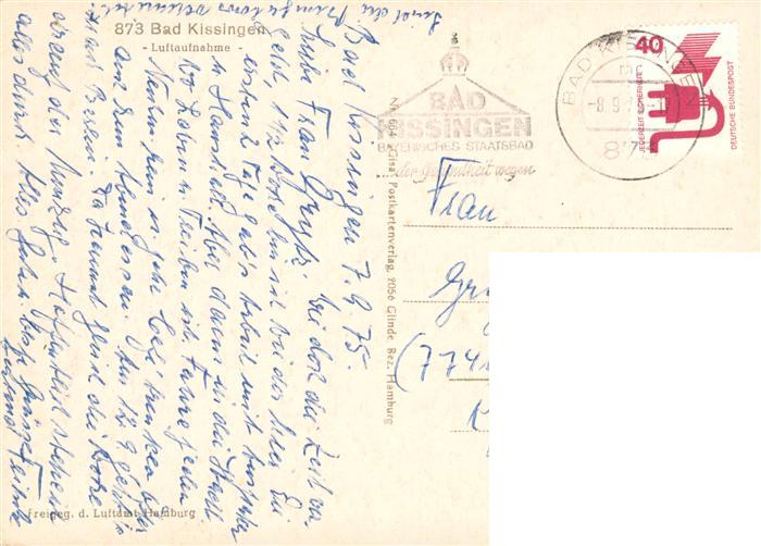 73882290 alte Postkarte Bad Kissingen Fliegeraufnahme postalisch gelaufen Erhaltung siehe scans [FriedD77] KatCode: 11110009672114