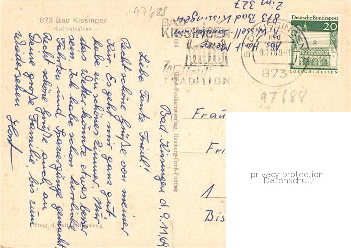 73108020 alte Postkarte Bad Kissingen Fliegeraufnahme postalisch gelaufen Erhaltung siehe scans [KathaD81] KatCode: 11110009672114