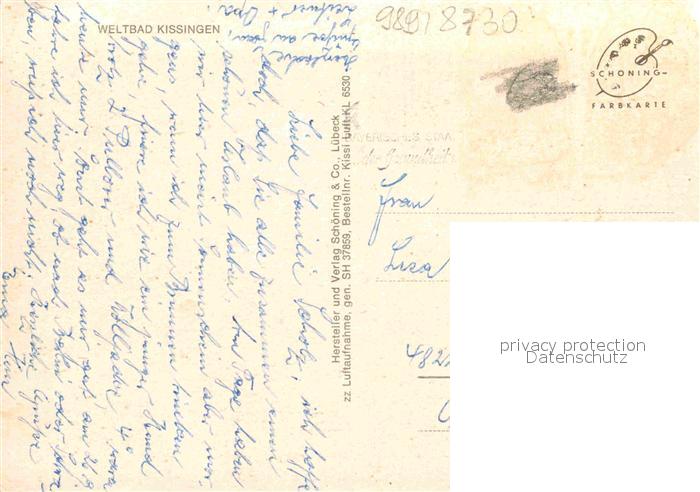 72877171 alte Postkarte Bad Kissingen Fliegeraufnahme postalisch gelaufen Erhaltung siehe scans [FriedD77] KatCode: 11110009672114