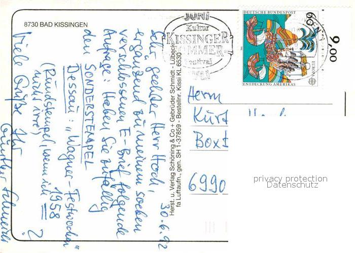 72798743 alte Postkarte Bad Kissingen Fliegeraufnahme postalisch gelaufen Erhaltung siehe scans [FriedD77] KatCode: 11110009672114