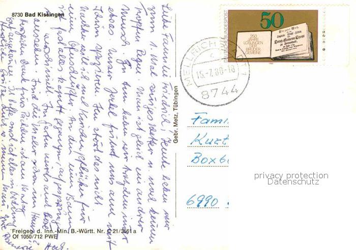 72795668 alte Postkarte Bad Kissingen Fliegeraufnahme postalisch gelaufen Erhaltung siehe scans [FriedD77] KatCode: 11110009672114