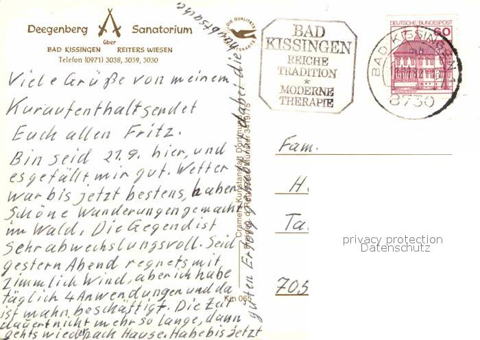 72906823 alte Postkarte Bad Kissingen Fliegeraufnahme Deegenberg Sanatorium postalisch gelaufen Erhaltung siehe scans [LiesaD40] KatCode: 11110009672114
