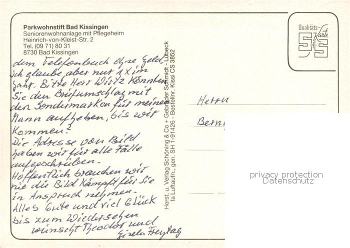 73685821 alte Postkarte Bad Kissingen Fliegeraufnahme mit Parkwohnstift Bad Kissingen postalisch gelaufen Erhaltung siehe scans [WerneD78] KatCode: 11110009672114