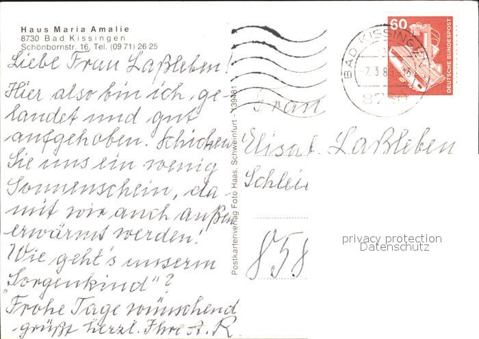 72535114 alte Postkarte Bad Kissingen Haus Maria Amalie postalisch gelaufen Erhaltung siehe scans [WerneD78 kt117box] KatCode: 11110009672114