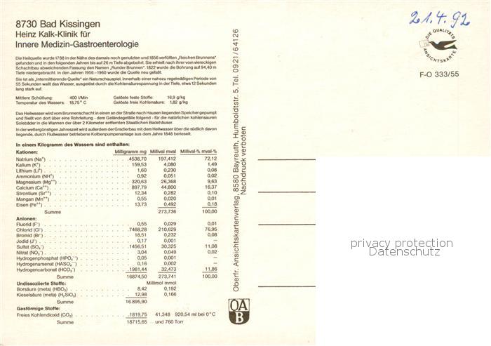 73860266 alte Postkarte Bad Kissingen Heinz Kalk Klinik fuer Innere Medizin Runder Brunnen Techn. Zeichnung postalisch gelaufen Erhaltung siehe scans [WerneD78] KatCode: 11110009672114