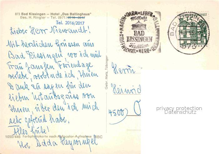72863492 alte Postkarte Bad Kissingen Hotel Das Ballinghaus postalisch gelaufen Erhaltung siehe scans [NatalD47] KatCode: 11110009672114